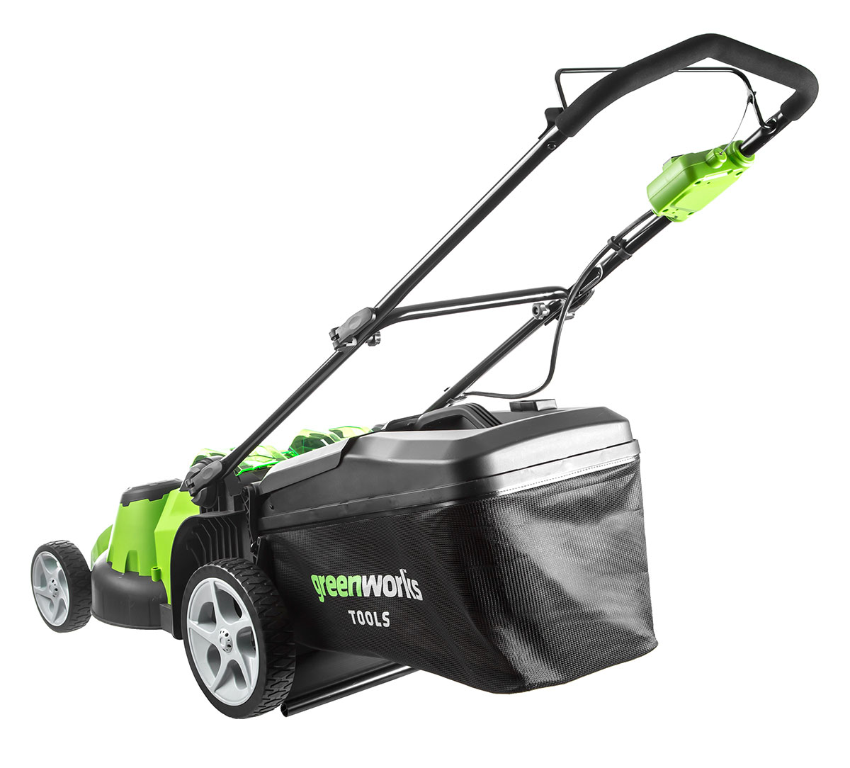 Газонокосилка аккумуляторная Greenworks G40LM49DB TwinForce — газонокосилка с двумя двигателями и двумя слотами для аккумуляторов. Большая ширина скоса позволяет обрабатывать крупные площади газона.