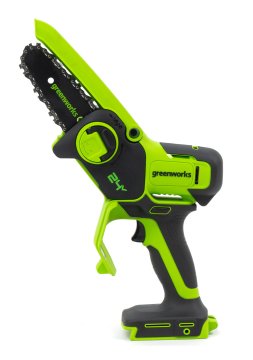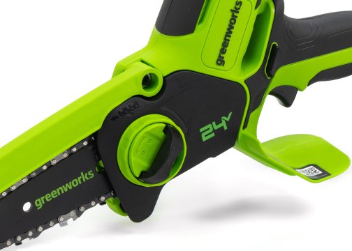 Компактная и удобная мини-пила Greenworks G24MCS10 24V с шиной 10 см и скоростью цепи до 7,8 м/с прекрасно подойдет для обрезки веток и сучьев в тех случаях, где тяжело использовать громоздкий инструмент. Инструментом удобно работать одной рукой за счет компактных размеров и небольшого веса. Такая пила подойдет для походов, подрезки веток в труднодоступных местах, а также поможет при изготовлении деревянных скульптур.
