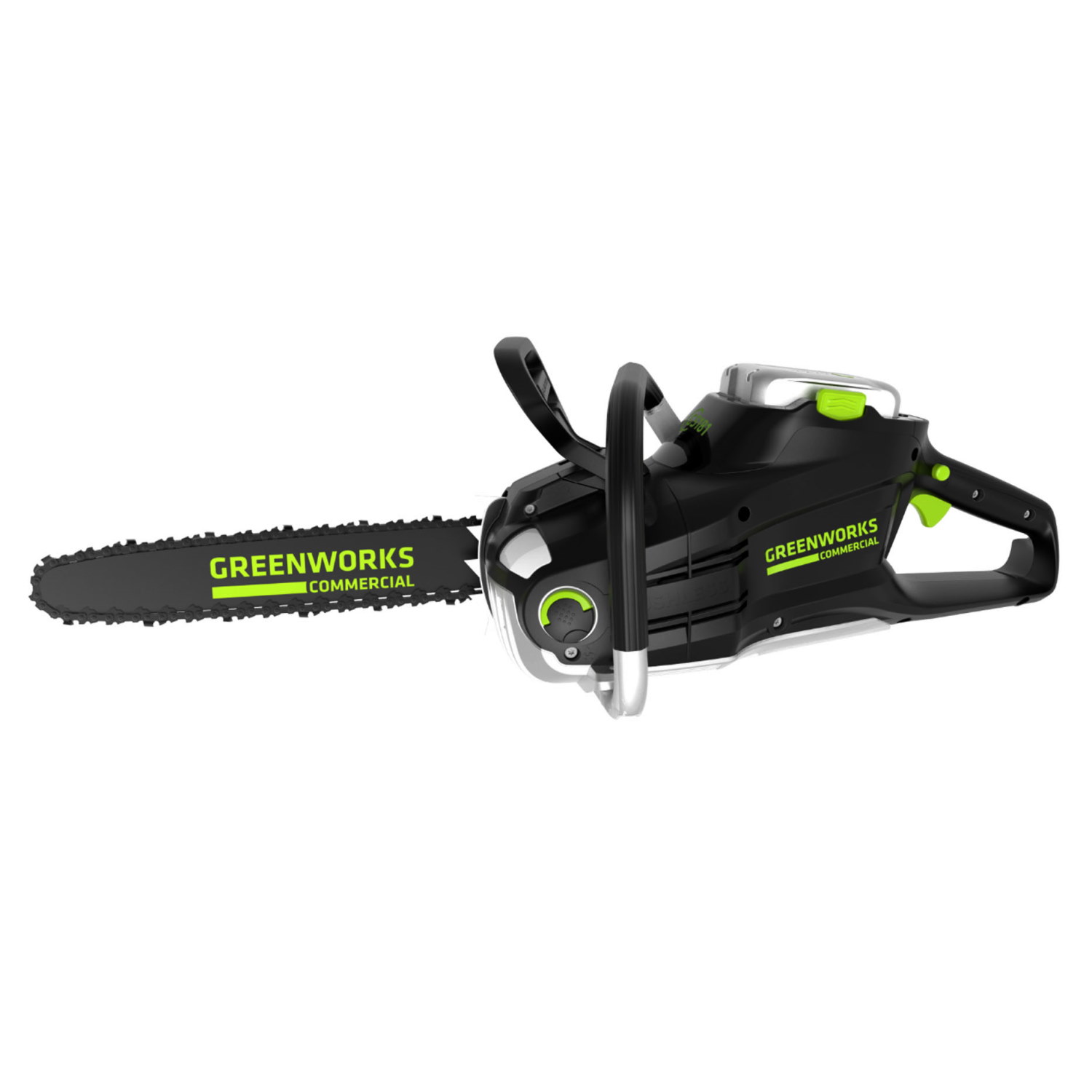 Пила цепная аккумуляторная 82V GREENWORKS GC82CS25 - профессиональная цепная пила с шиной длиной в 46 см позволяет быстро распиливать бревна и пилить деревья любых размеров. Ее бесщеточный двигатель DigiPro с защитой от перегрузки вращает цепь со скоростью 21 м/c, что обеспечивает производительность работы, сравнимую с мощными бензиновыми аналогами. У вас не возникнет необходимости заливать горючую смесь и долго заводить, потому что пила включается нажатием всего одной кнопки.