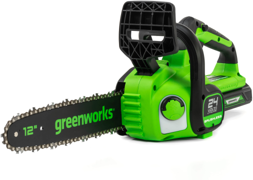 Аккумуляторная пила GREENWORKS GD24CS30 - компактная и мощная цепная пила имеет шину длиной 30 см для быстрого и простого распила небольших деревьев и бревен. Ее бесщеточный двигатель DigiPro дает цепи скорость вращения 7,8 м/c, что позволяет с легкостью пилить даже сырую древесину. Базовая цепь имеет шаг 3/8” и паз 1,1 мм, что подходит для большинства простых задач на участке.