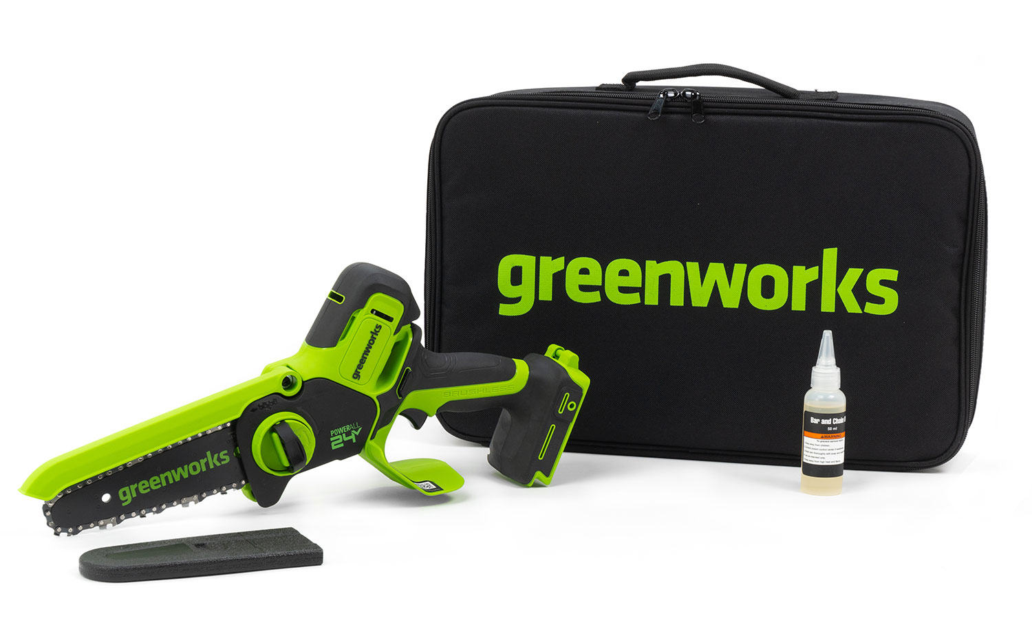 Компактная цепная пила Greenworks GD24CSMNX 24V с шиной 15 см и скоростью цепи до 7,8 м/с отлично подойдет для обрезки веток и сучьев, а также для работ труднодоступных местах! Пила идеальна для работ одной рукой благодаря своим компактным размерам и малому весу. Модель подойдет для рыбаков, любителей походов, мастеров по изготовлению деревянных скульптур или для садоводов, которым тяжело обращаться с громоздкими бензопилами.