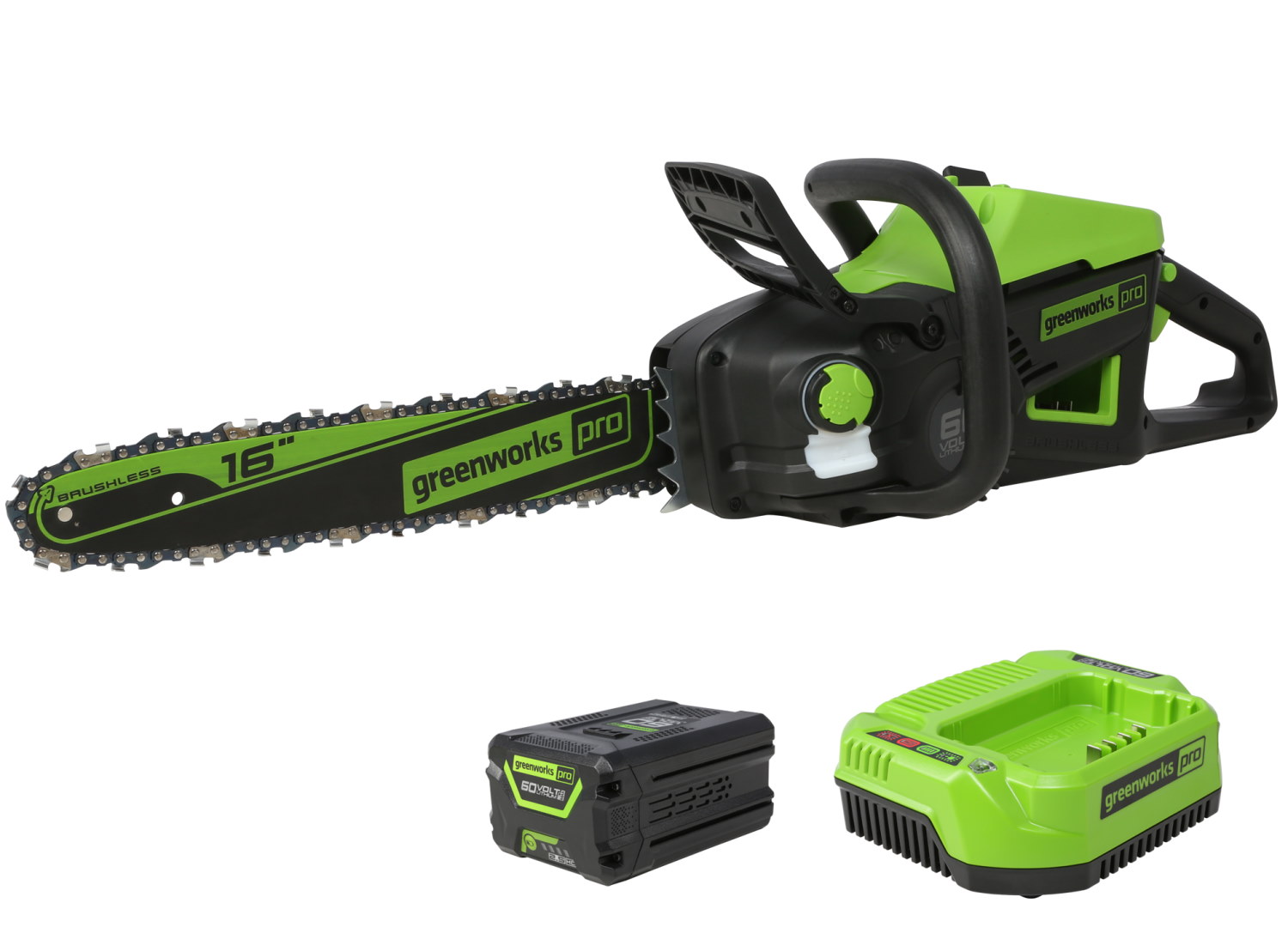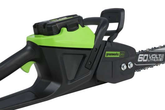 Greenworks GD60CS40 - надёжная и чрезвычайно мощная аккумуляторная цепная пила, рассчитанная на выполнение профессиональных задач по обрезке, валке и распиловке древесины на придомовых и садовых участках. Инструмент является прекрасной альтернативой устройств, работающих на бензине. Высокая производительность и увеличенный срок службы, а также отсутствие выбросов СО, вибрации и шума обусловлены использованием аккумуляторной батареи 60V, разработанной по новейшим технологиям.