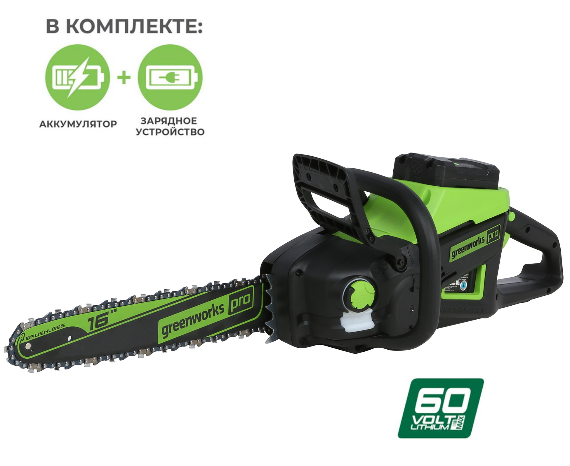 Аккумуляторная пила Greenworks GD60CS40K2 с АКБ 2 Ач и ЗУ