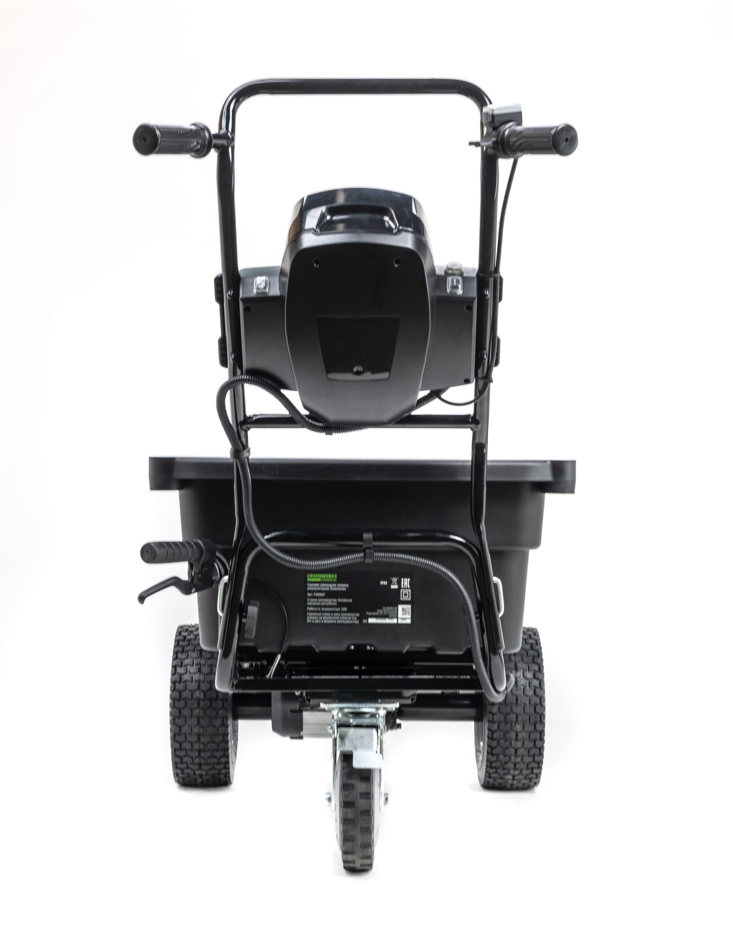 Тележка оснащена мощным бесщёточным двигателем DigiPro, что позволяет развивать скорость до 4.2 км/ч. Скоростей три: высокая - 4.2 км/ч, низкая - 3 км/ч, задний ход - 2.4 км/ч. Грузоподъемность 100 кг и объем ковша 106 литров даст вам возможность перевозить большое количество грузов.