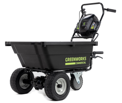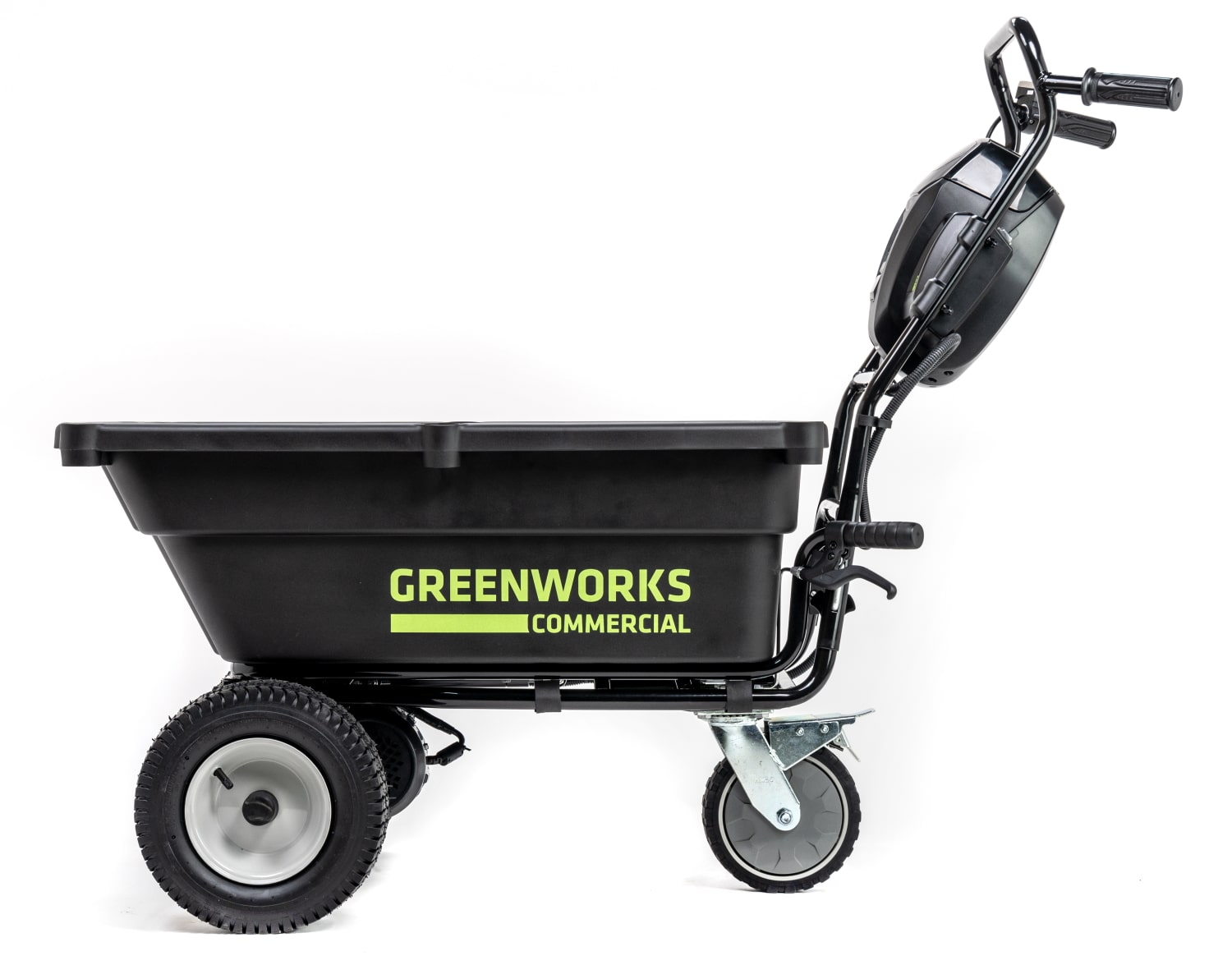 Садовая самоходная тележка Greenworks 82GC 82V 7400607SET (106 л) аккумуляторная — мощная самоходная тележка из профессиональной линейки отлично подойдет для перевозки различных материалов, удобрений и садовой техники!
