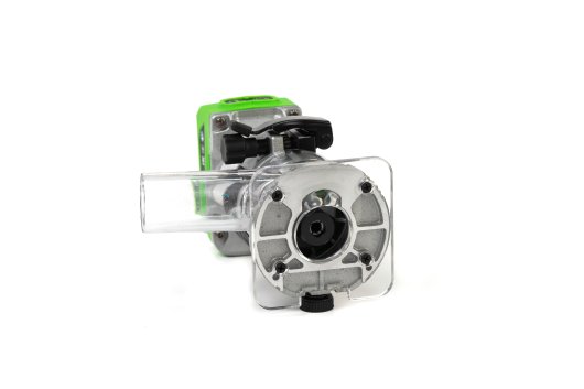 Модель G24RO оснащена цанговым патроном 0,6 см (1/4”) и 5-ступенчатой регулировкой, которая позволяет выполнять разные задачи. Фрезер имеет функцию поддержания оборотов под нагрузкой для удобного пользования и плавный пуск для избежания толчков при запуске. Направляющая устройства задает расстояние от кромки заготовки до центра фрезы. С ее помощью можно фрезеровать от центра окружности до центра фрезы с расстоянием от 70 до 221 мм.