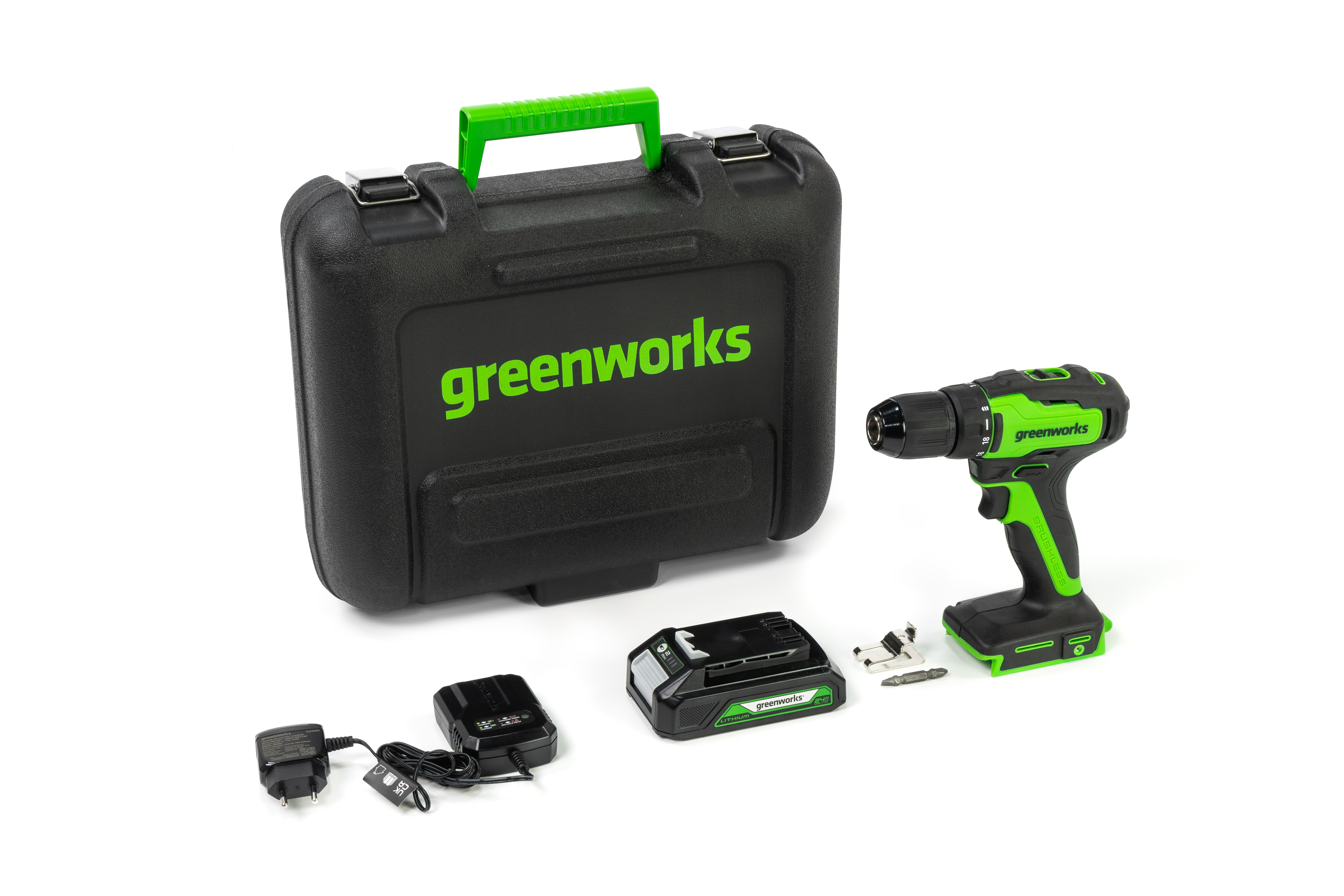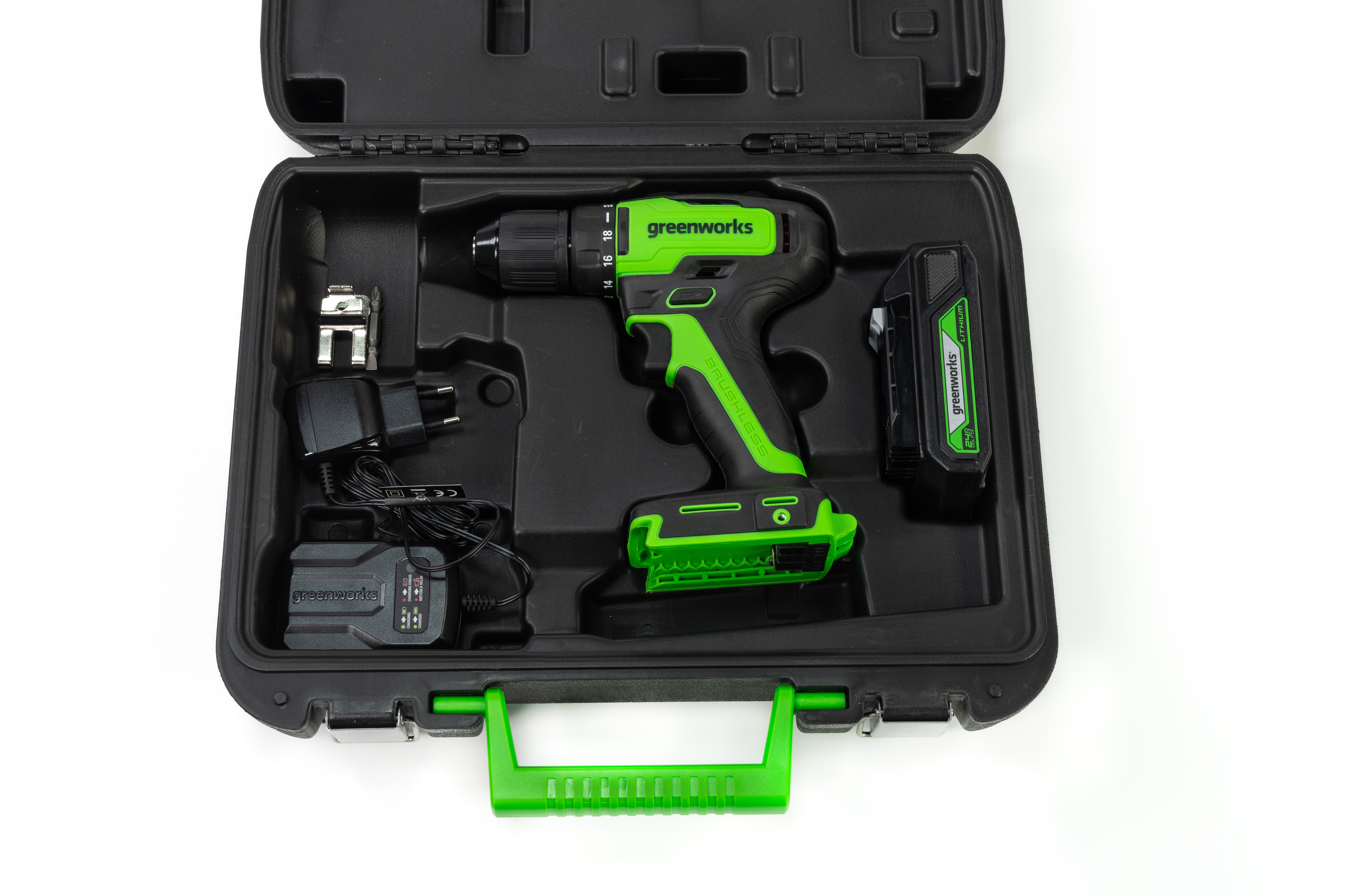 Дрель-шуруповерт аккумуляторная Greenworks GD24DD35K2 с АКБ 2 Ач и ЗУ в кейсе