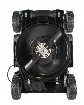 Для предотвращения сколов и трещин от попадания камней, корпус выполнен из специального ударостойкого пластика ABS. Косилка имеет современный дизайн с дополнительными боковыми диффузорами, которые увеличивают площадь кошения за счет подгибания травинок к лезвию.