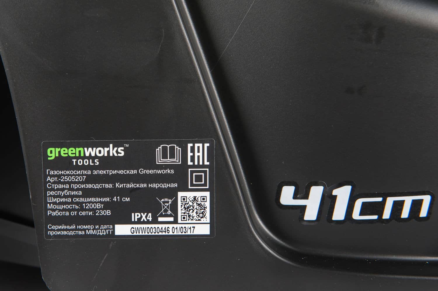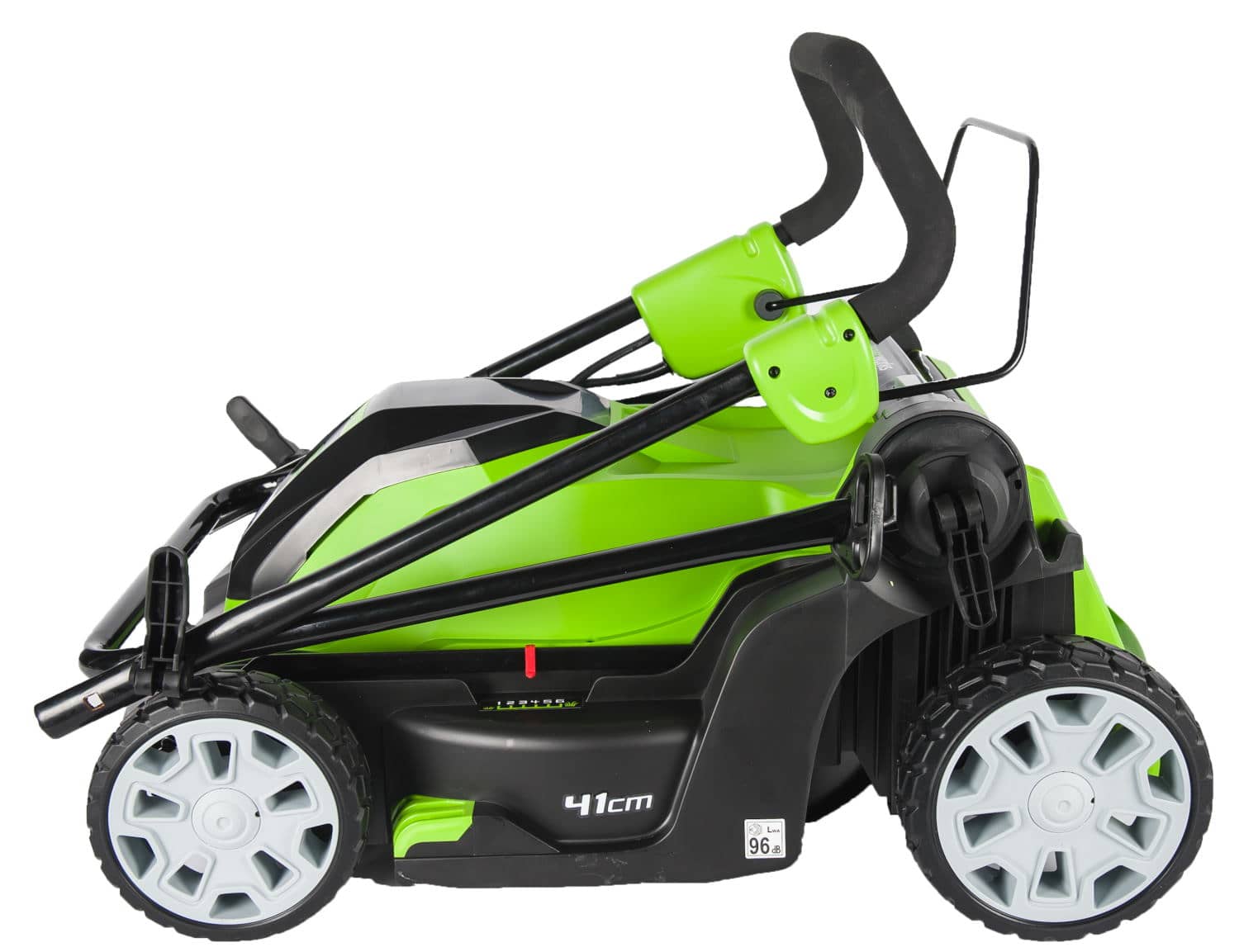 на оснащена самым современным энергоэффективным двигателем мощность 1200 Ватт, при этом ширина скашивания составляет 41 см, что сопоставимо со многими бензиновыми моделями.