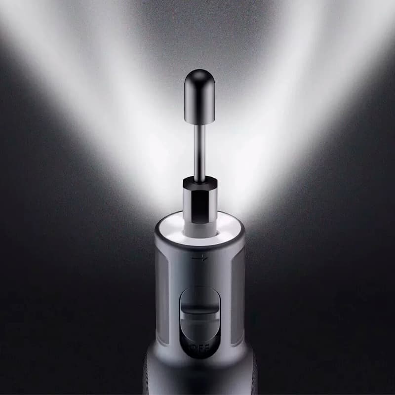 Модель отличается компактными габаритами и малым весом всего 0,3 кг, что делает ее удобной для использования. Инструмент оснащен светодиодной подсветкой, что обеспечивает удобство работы даже с мелкими деталями. Есть защита от перегрузки для долгого срока службы.