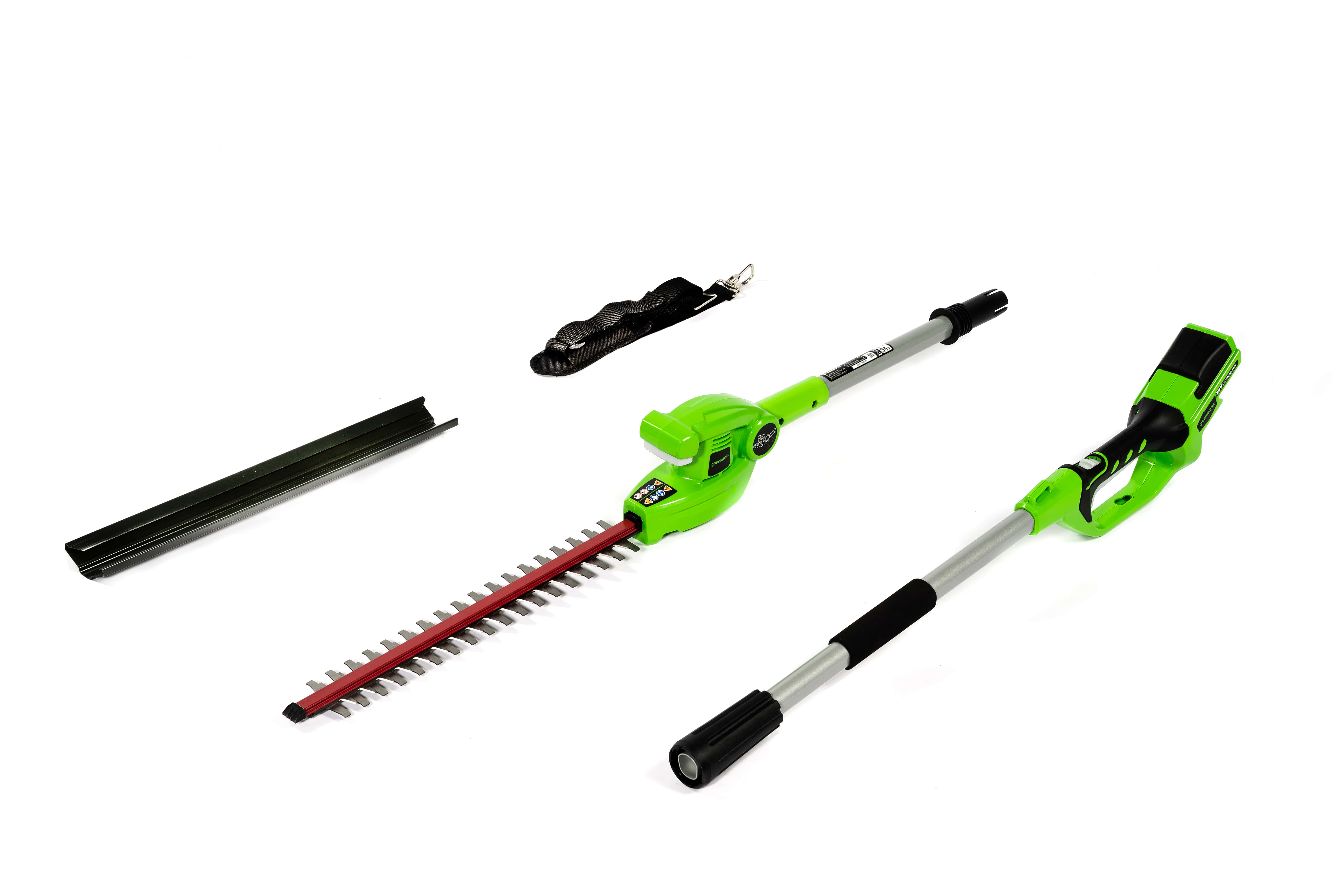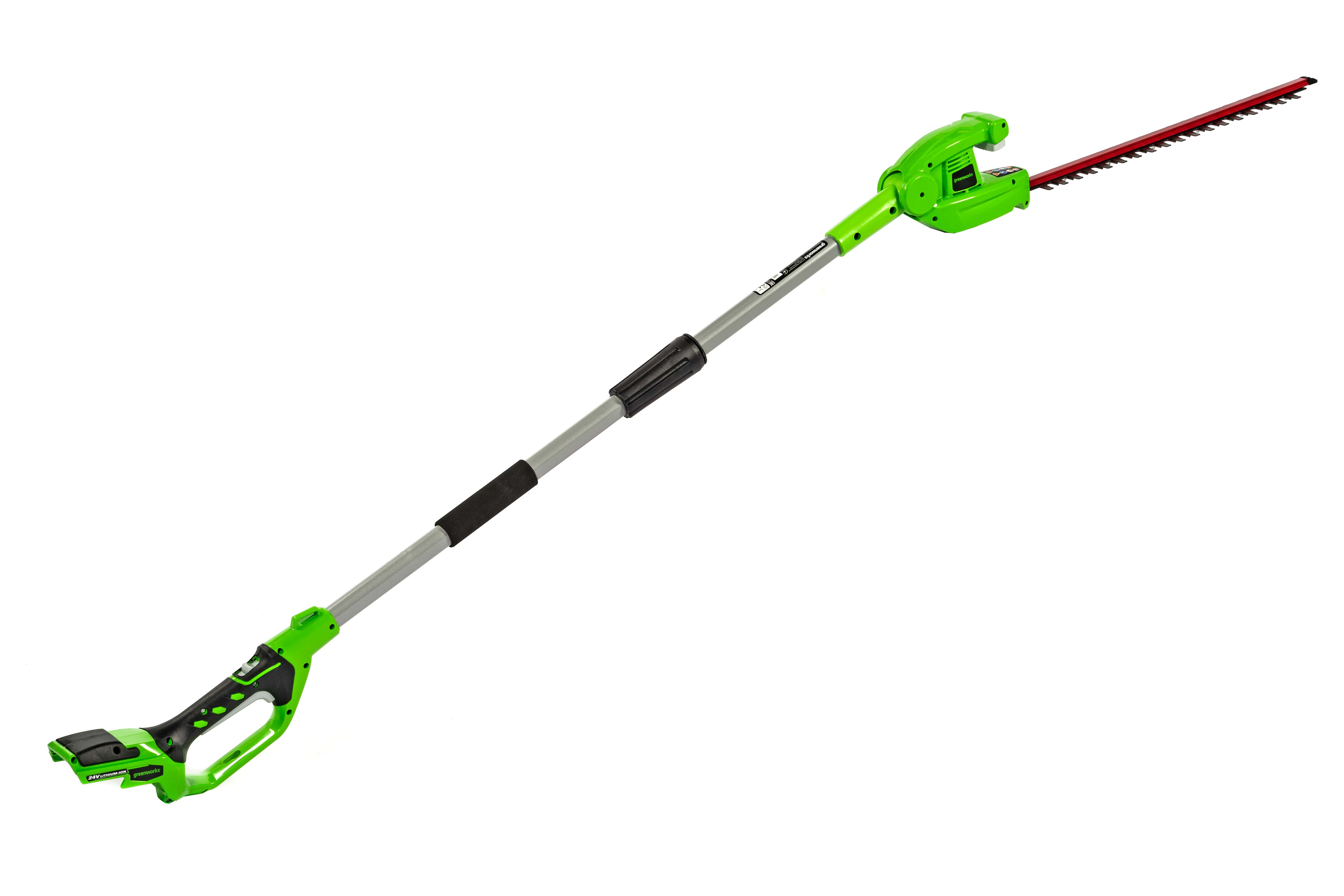 Основное преимущество Greenworks G24PH51 - многопозиционное лезвие (7 положений). Это делает вашу работу по уходу за деревьям проще и позволяет выполнять подрезку под разным углом. Также основной особенностью модели является составная штанга с максимальной длиной устройства составляет 205 см.