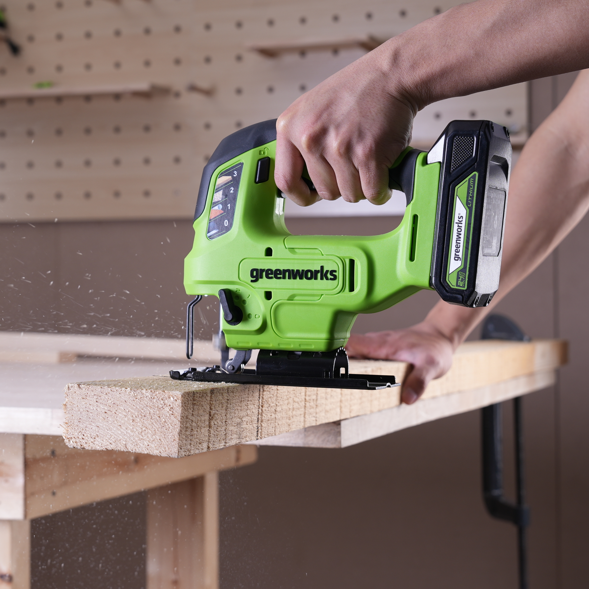 Лобзик аккумуляторный GreenWorks GD24JS90 24В с АКБ 2 Ач и ЗУ