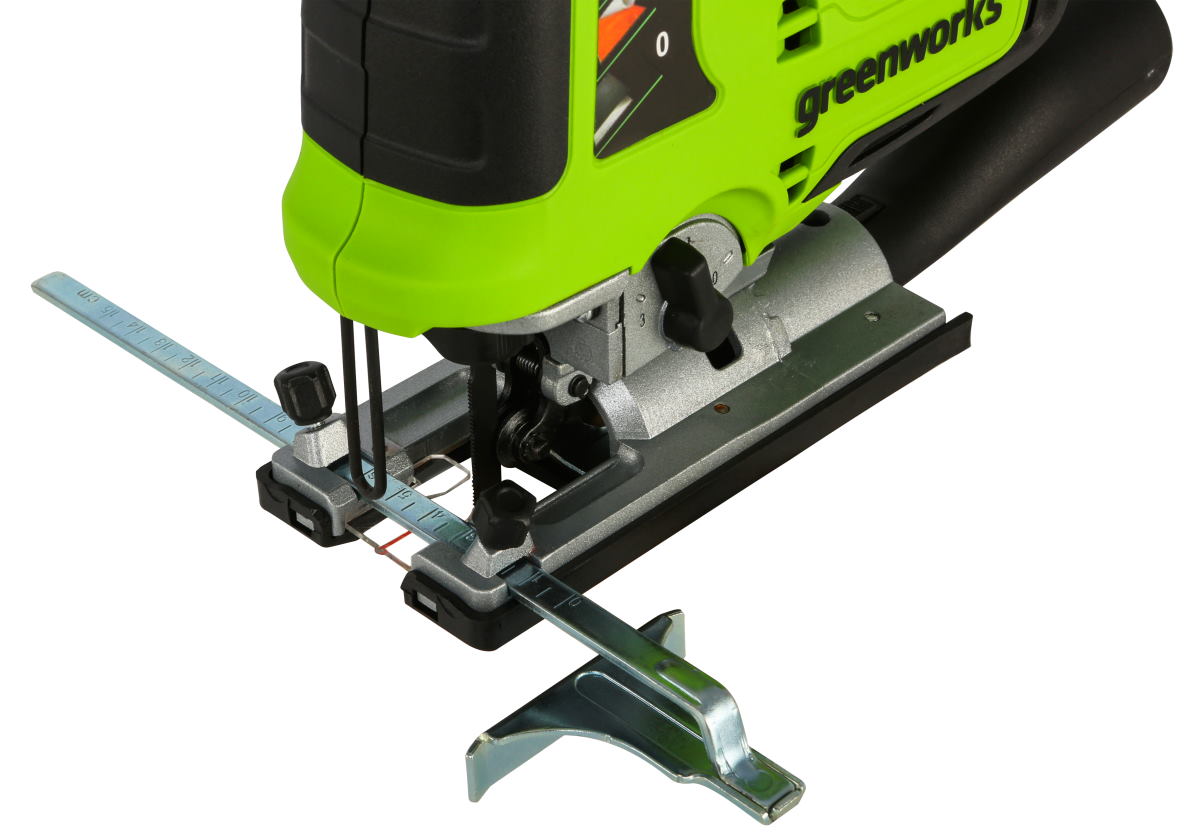 Предназначение Greenworks GD24JS — пиление древесины и металла. Максимальная глубина реза в древесине — 100 мм, а в нелегированной стали — 8 мм. Полотно имеет быстрозажимной бесключевой фиксатор для легкой и быстрой замены полотен. Для надежности подошва лобзика сделана из металла и прикрыта пластиковым кожухом. Маятник имеет 3 ступени регулировки хода с плавной регулировкой скорости, обеспечивая эффективную и точную работу инструментом.
