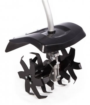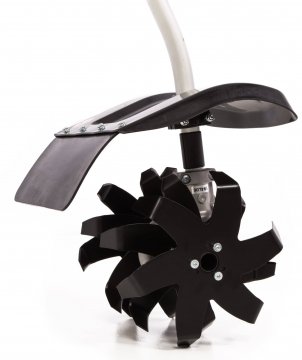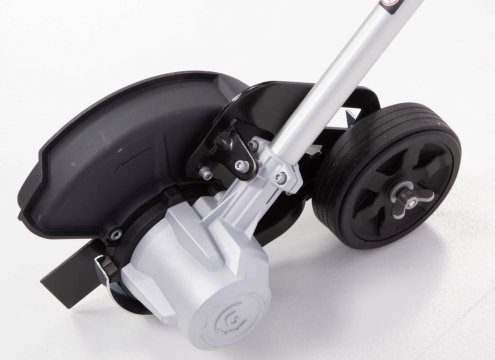 Верхнее расположение двигателя обеспечивает лучшую балансировку и снижает уровень вибрации. Скорость кошения регулируется. Cоставная конструкция вала обеспечивает легкую транспортировку и удобство хранения. Триммер имеет предохранитель от случайного включения и защитный кожух режущей части.