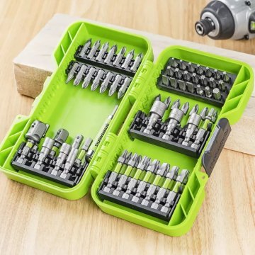 Набор содержит биты, торцевые головки и адаптеры востребованных размеров для производительной работы в мастерской или на строительном объекте