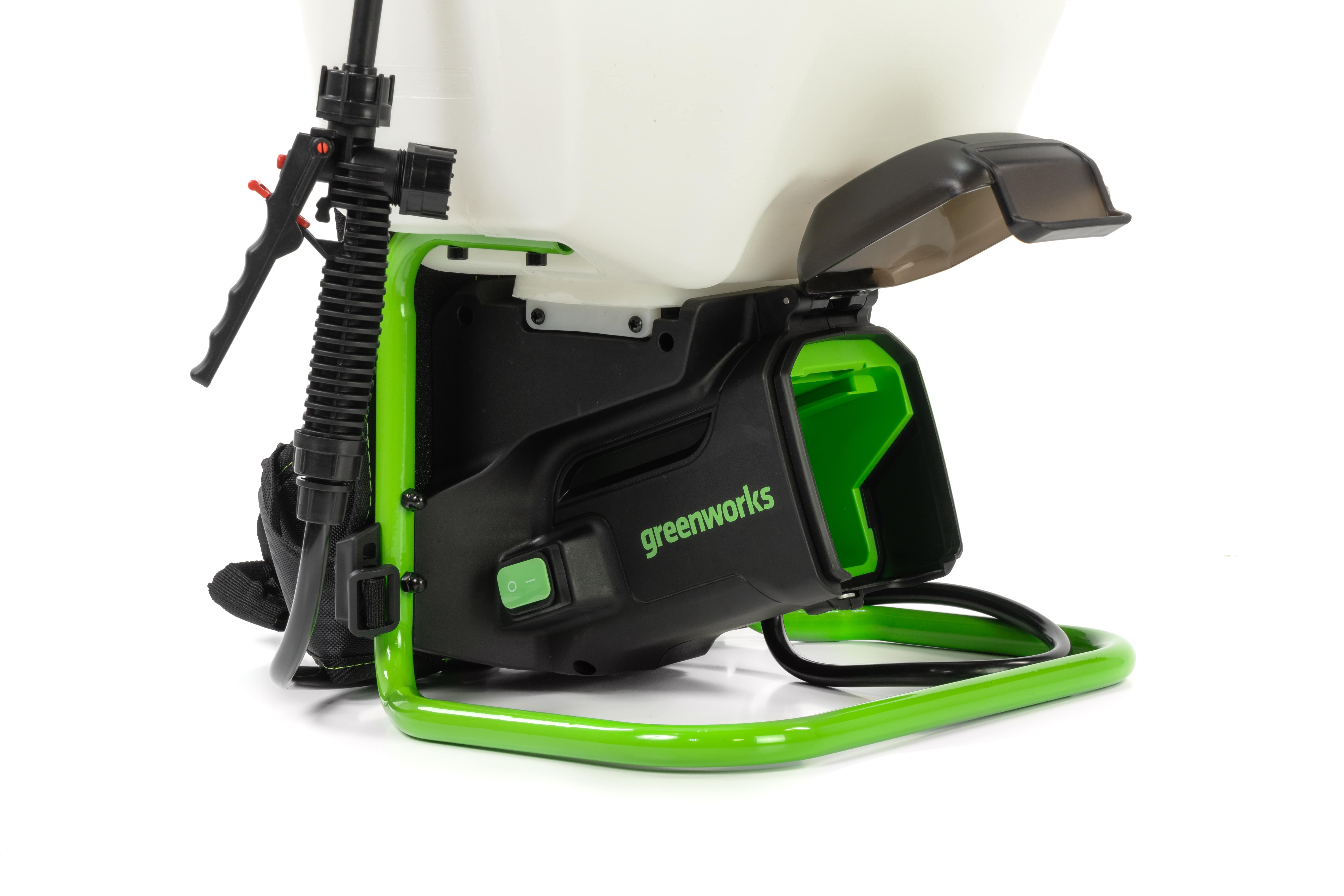 Аккумуляторный опрыскиватель Greenworks — идеальное решение для садоводов и владельцев больших участков. Он предназначен для борьбы с сорняками, вредителями, болезнями растений, внесения удобрений и полива. Благодаря продуманной эргономике опрыскиватель удобно располагается на спине, как ранец. Широкие наплечные ремни, поясной ремень и нагрудный ремень обеспечивают надёжную фиксацию инструмента. Мягкая подкладка на спине обеспечивает комфорт во время использования.