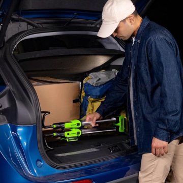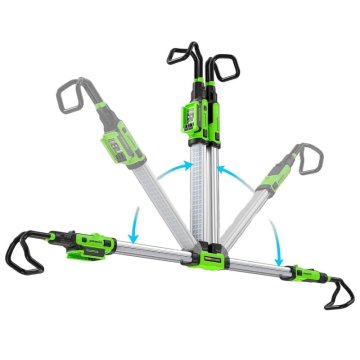 Подкапотный LED-прожектор Greenworks G24UHL 24V 3503607 (1200 Лм) аккумуляторный — прожектор из серии 24V со световым потоком до 1200 Лм для освещения во время ремонта и обслуживания автомобиля. Имеет 3 режима работы, складную конструкцию, регулируемую длину до 204 см.