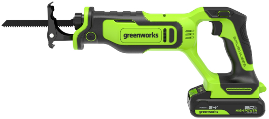 Сабельная пила аккумуляторная GreenWorks GPT-BLRS-1 24В, с АКБ 2 Ач и ЗУ