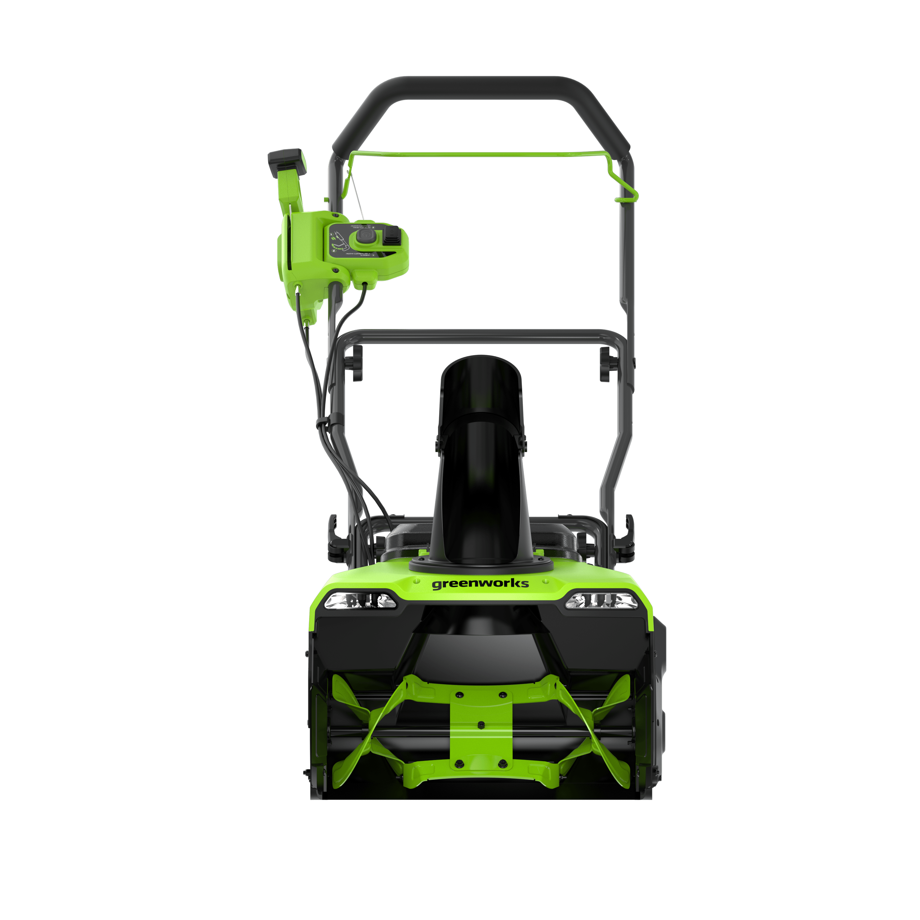 Две яркие LED фары делают комфортной работу в условиях недостаточной освещенности. Снегоуборщик отличается простотой в использовании: запуск производится одним нажатием кнопки, избавляя от необходимости сложной работы с топливом, дросселем и стартером. Конструкция не предусматривает замену фильтров и свечей, что максимально упрощает эксплуатацию. Современный бесщеточный двигатель устойчив к износу, долговечен, прост в обслуживании, экологичен и характеризуется низким уровнем шума и вибрации. Питание осуществляется от аккумуляторов 40V, совместимых со всей линейкой Greenworks G-MAX 40V, предлагающей широкий спектр инструментов для различных садовых задач.