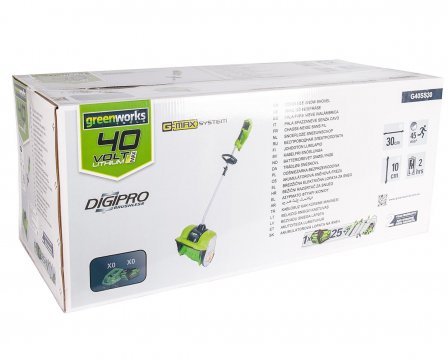Аккумуляторный снегоуборщик GreenWorks легкий и компактный инструмент для очистки от снега придомовых, садовых и уличных территорий. Он станет незаменимым помощником для владельцев отдельных гаражей в зимний период. Данная модель оснащена бесщёточным электродвигателем DigiPro. Двигатель DigiPro надежнее обычного щёточного. Сопоставим по мощности с двигателем внутреннего сгорания. При этом абсолютно экологичен. Не требует дополнительного обслуживания. Прост в эксплуатации. Имеет пониженный уровень вибраций и шума.