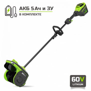 Снегоуборщик аккумуляторный Greenworks GD60SS2, 60V, 30 см, с АКБ 5 Ач и ЗУ