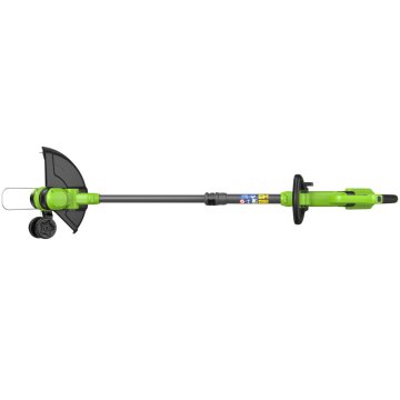 Триммер Greenworks G40LT331 40V 2113507 (33 см) аккумуляторный — триммер из серии 40V для скашивания травы и подрезки кромок. Ширина кошения составляет 33 см. Леска 2 мм с автоматической подачей. Регулируемая по углу наклона D-образная ручка. Легкий и мощный инструмент, устройство 2 в 1, сочетает в себе функции садового триммера и кромкореза. Его главное преимущество — автономность, что делает его полноценной заменой сетевому инструменту. Больше не нужно беспокоиться о проводах и наличии розетки поблизости. В комплект входят 20 пластиковых ножей для эффективного скашивания травы и диск для их установки. В режиме подрезки кромок небольшие колеса, установленные на инструменте, предотвращают касание земли, обеспечивая ровную и аккуратную кромку вашего газона.