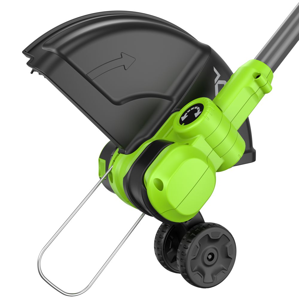 Угол наклона режущей части регулируется и имеет 7 положений, что позволяет настроить инструмент под рост оператора и эффективно использовать его в режиме подрезки кромок. D-образная рукоятка триммера регулируется по углу наклона, что делает его удобным для маневрирования в условиях ограниченного пространства. Теперь даже самые труднодоступные участки вашего сада станут безупречными.