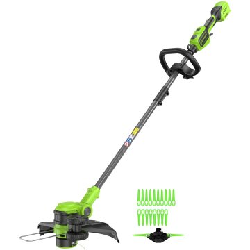 Аккумуляторный триммер Greenworks GD24LT331 24V 2113407UB, поставляемый с аккумулятором 4 Ач и зарядным устройством, является частью линейки 24V и предназначен для стрижки травы и обработки краев газонов. Этот триммер имеет ширину кошения 30 см при использовании лески и 25 см при использовании двух пластиковых ножей. Оборудован бесщеточным двигателем, обеспечивающим высокую производительность.