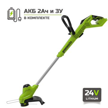 Триммер аккумуляторный Greenworks G24LT28K2 с АКБ 2 Ач и ЗУ