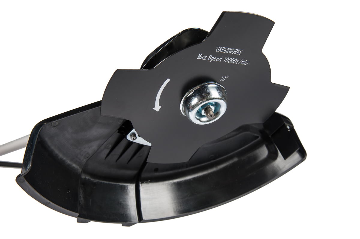 Аккумуляторный триммер Greenworks из линейки устройств 82V Commercial (модель GD82BC). Данная модель относится к коммерческой серии, триммер с легкостью справиться с высокой и густой травой, а благодаря металлическому диску (в комплекте) можно резать даже крупный кустарник и сухостой.