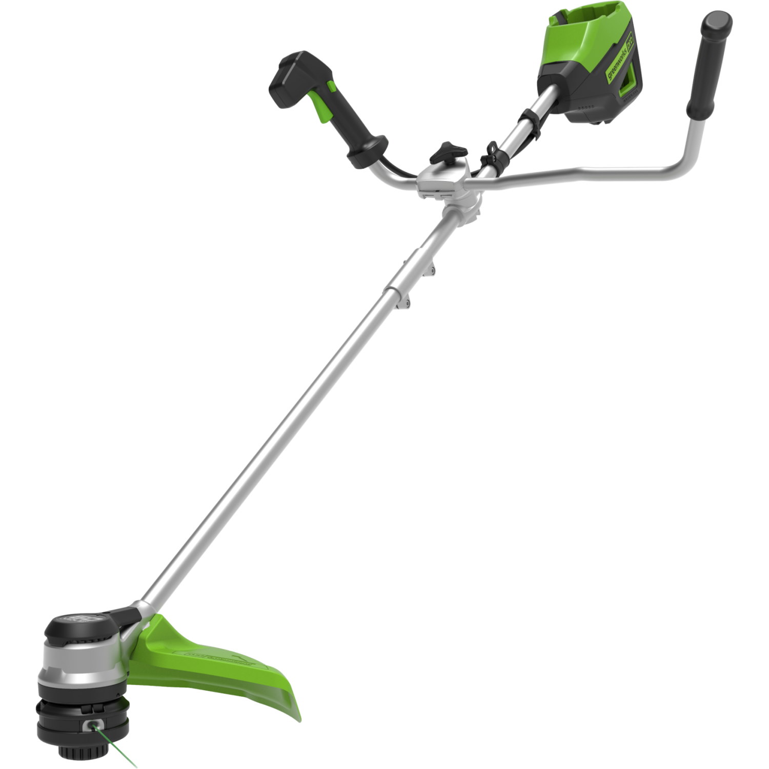 Аккумуляторный бесщеточный триммер Greenworks GD60BCBK4 - садовый инструмент из новой профессиональной линейки Greenworks 60V, который станет отличной заменой электрическому или бензиновому триммеру. Он легко справиться с высокой, густой травой или молодой порослью кустарника. Назначение этого садового триммера - подрезка травы в труднодоступных местах, грубый покос высокой травы или кустарника.