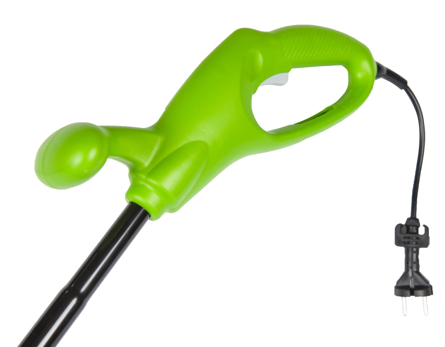 Компактный размер позволяет работать даже в в труднодоступных местах — например, в цветниках. Основным преимуществом триммера является легкий вес — всего 1,8 кг.