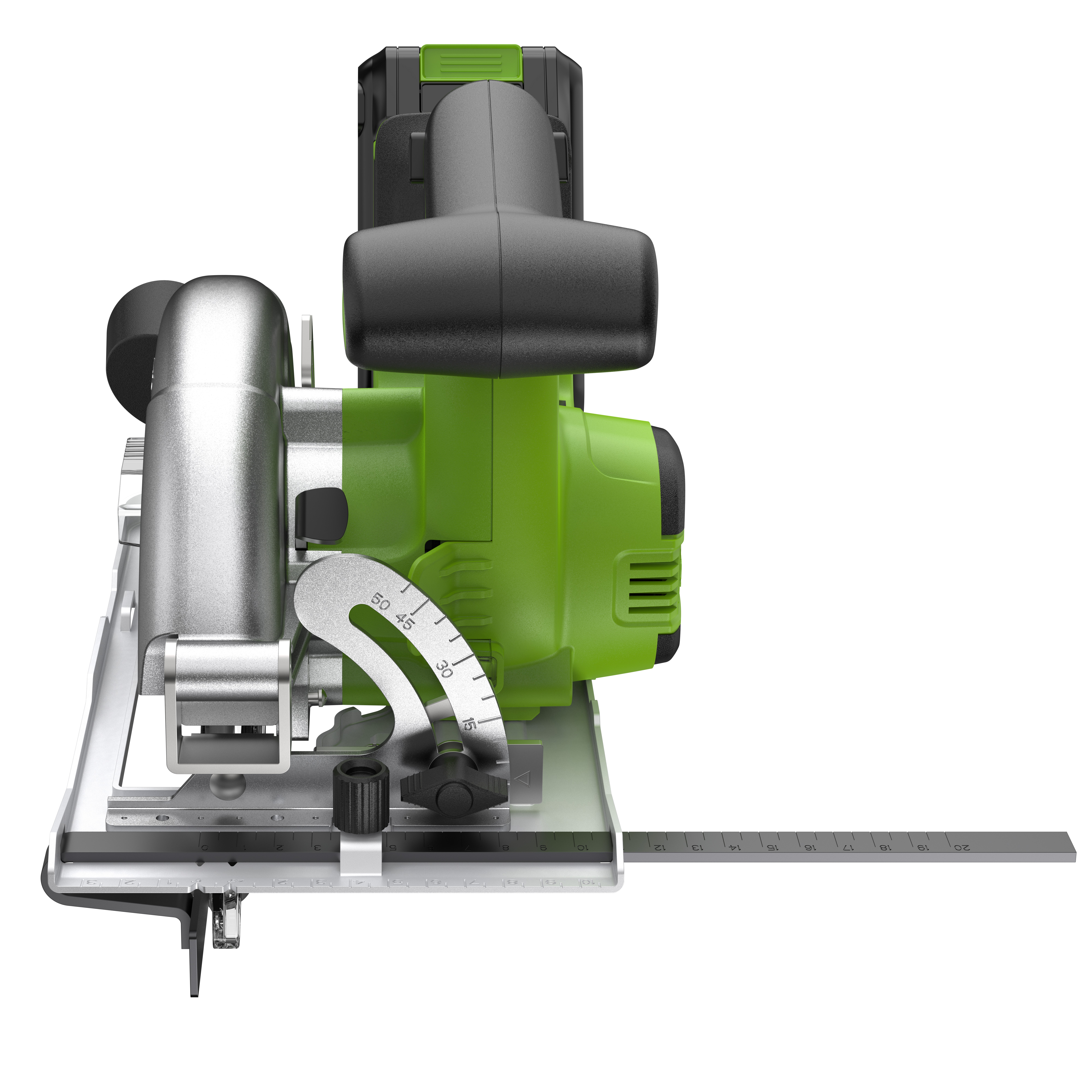 Безопасность работы обеспечивается кнопкой-предохранителем, предотвращающей случайный запуск. Также реализована защита от обратного удара при заклинивании диска, а также от перегрузки и перегрева двигателя. Расположение пильного диска – справа. Металлическое основание дополнено фронтальной разметкой для контроля точности реза. Эргономичная рукоятка с антискользящим покрытием обеспечивает комфортный захват. Светодиодная подсветка рабочей зоны улучшает видимость в условиях недостаточной освещенности. Использование бесщеточного двигателя нового поколения гарантирует увеличенный срок службы, сниженный уровень шума и вибрации, отсутствие необходимости в сложном обслуживании, а также экологичность.