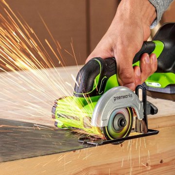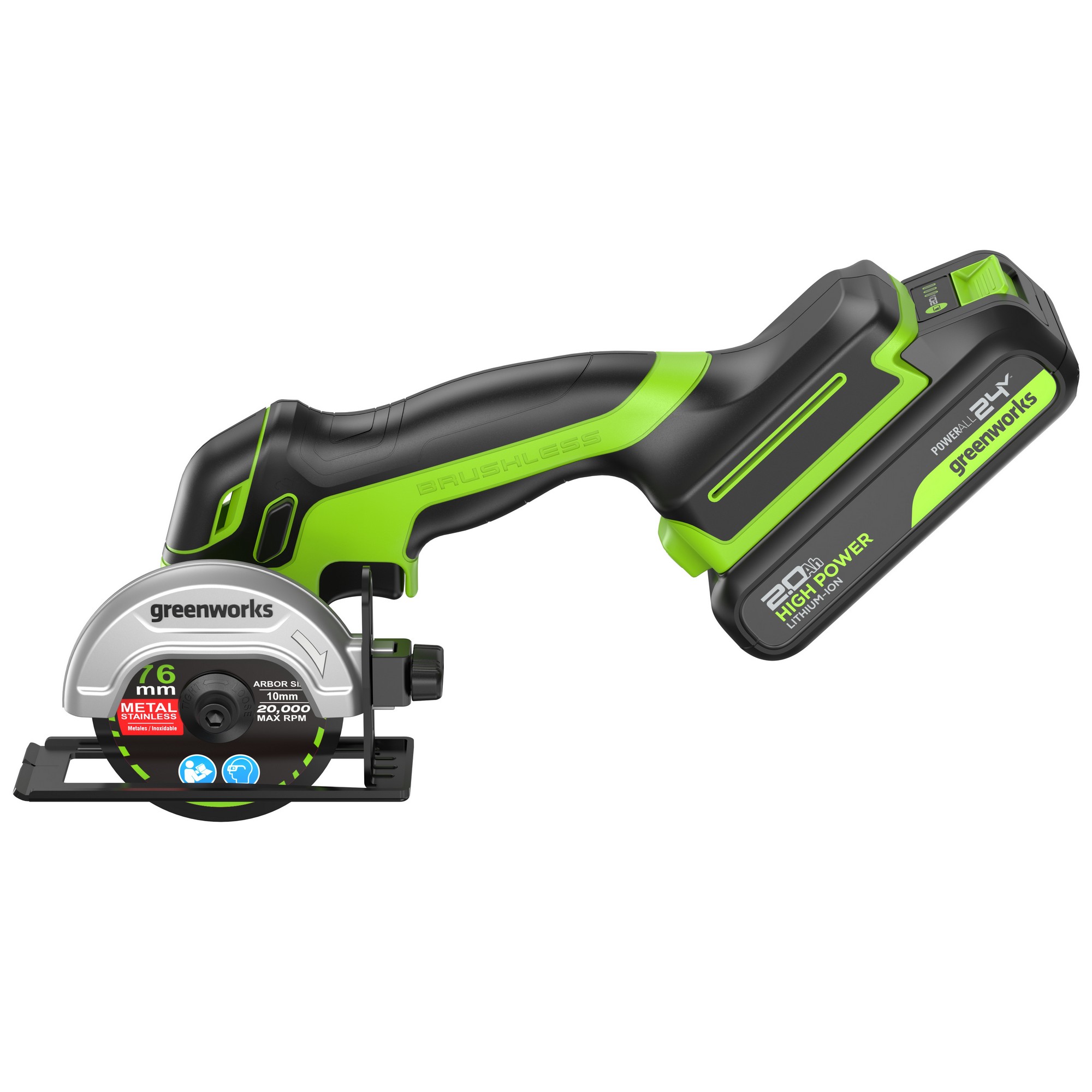 Угловая шлифмашина (болгарка) Greenworks GD24UCS 24V — болгарка из серии 24V для резки и шлифовки материалов. Имеет диаметр диска 76 мм, посадочное место 10 мм, скорость до 20000 об/мин. Резьба шпинделя М6. Оснащена бесщеточным двигателем. Компактная болгарка предназначена для обработки различных материалов, включая металл и керамогранит. С ее помощью можно осуществлять резку и шлифовку в зависимости от оснастки. Максимальный диаметр диска составляет 76 мм, а посадочное отверстие — 10 мм. Вращение достигает до 20 000 об/мин.