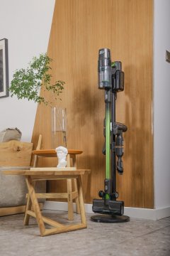 Модель можно использовать и как вертикальный, и как ручной пылесос. Мощность 500 Вт и расход воздуха 21 л/с обеспечивают высокую производительность инструмента. Пылесос работает до 45 минут на одном заряде аккумулятора и заряжается всего за 30 минут. Для удобства использования пылесос оснащен LED-дисплеем с индикацией оставшегося времени работы, подсветкой на щетке для уборки мест с низкой освещенностью и специальной клипсой для хранения насадок. Также в комплекте идет зарядная база с креплением на стену и 3 USB-портами для зарядки мобильных устройств ( 2 x USB-C; 1 x USB-A).