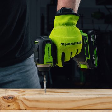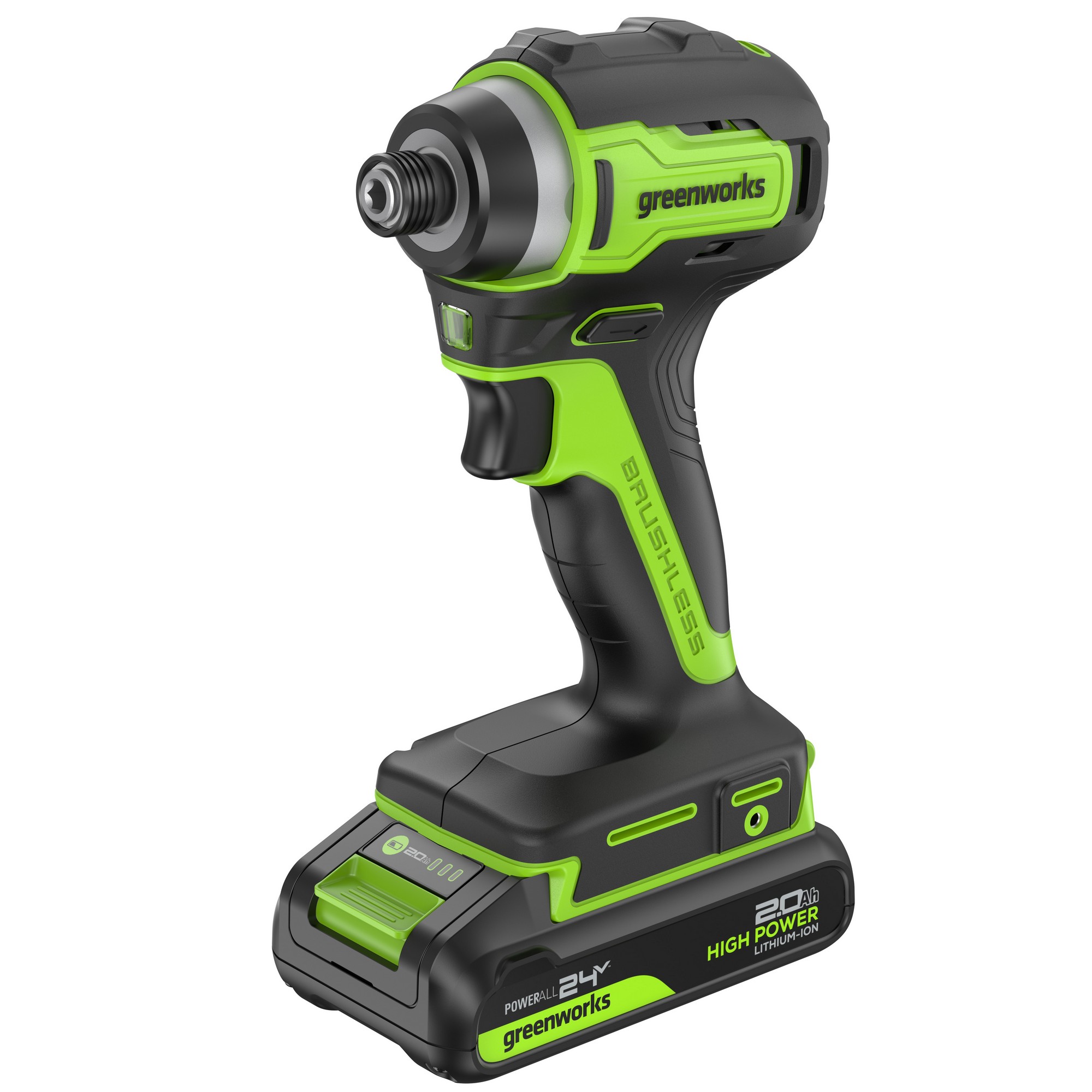 Универсальность достигается благодаря бесключевому патрону с внутренним шестигранником HEX 1/4” (6,35 мм) и механической фиксацией, гарантирующему быструю и надежную смену бит и сверл с хвостовиком 1/4”. Надежная конструкция включает металлический корпус редуктора, прочный ударный механизм и обновленный бесщеточный двигатель DigiPro с цифровым управлением и встроенной защитой от перегрузки и перегрева. Интеллектуальная система Greenworks Intelligent Power осуществляет управление аккумулятором, инструментом и зарядным устройством, обеспечивая максимальный срок службы и оптимальную производительность. Высокая производительность позволяет закрутить более 200 саморезов для террасной доски размером 4х65 мм от одного заряда аккумулятора емкостью 2 Ач. Инструмент совместим со всеми аккумуляторами платформы Greenworks POWERALL 24V.