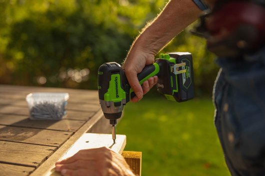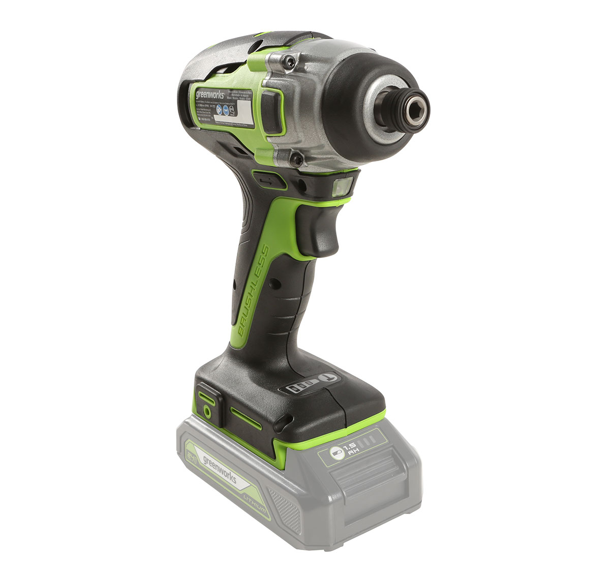 Винтоверт Greenworks GD24ID3 оснащается быстро зажимным патроном под шестигранную биту размером 6 мм. Работает данная модель от 24V аккумулятора, напряжение которого на 30% выше принятого 18V стандарта, более того, этот аккумулятор может применяться для работы с более чем 20-ю устройствами, в том числе и садовым инструментом линейки Greenworks G-24V.