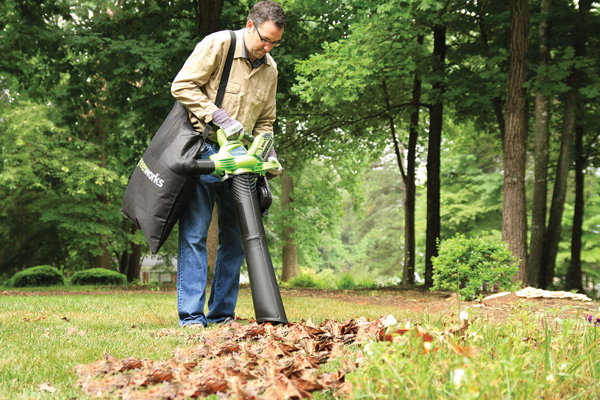 Воздуходувка Greenworks GD40BV - это инструмент 2-в-1, который не только сдувает мусор, но и работает как пылесос с функцией мульчирования. Мусор собирается в специальный мешок. Воздуходув имеет надёжный бесщёточный двигатель серии DigiPro сопоставимый по мощности с бензиновыми аналогами. При этом он экологически чист, имеет высокий крутящий момент, низкий уровень шума и вибраций, а так же прост в эксплуатации - не требует подготовки масло-бензиновой смеси и какого-либо обслуживания.