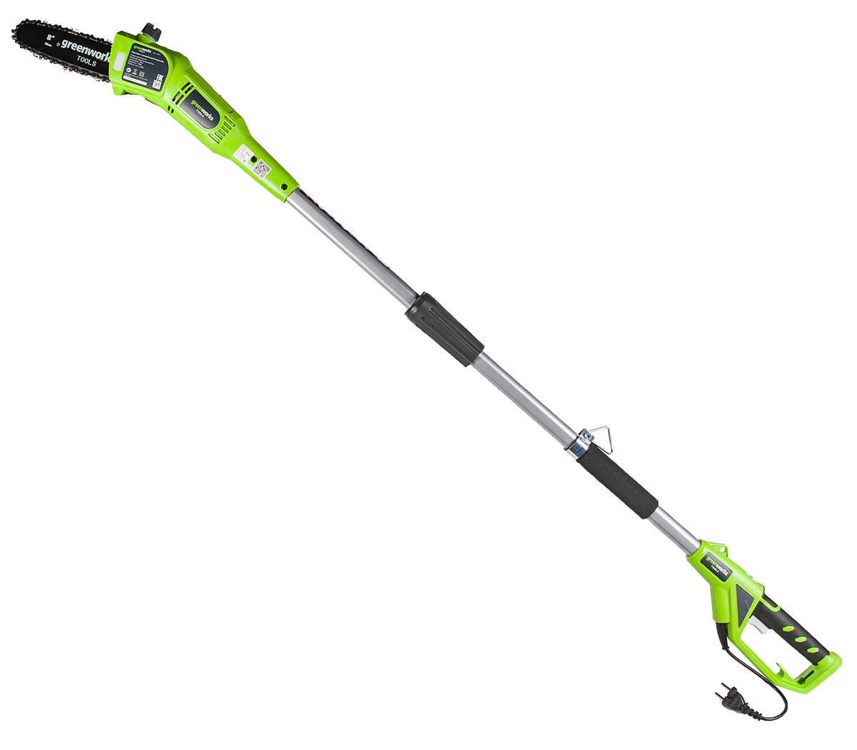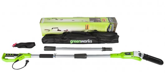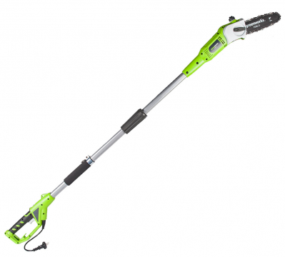 Электрический высоторез (сучкорез) Greenworks GPS7220 мощностью 720W — специальное приспособление для простоты и удобства подрезки ветвей и сучьев деревьев на высоте до 4-х метров.
